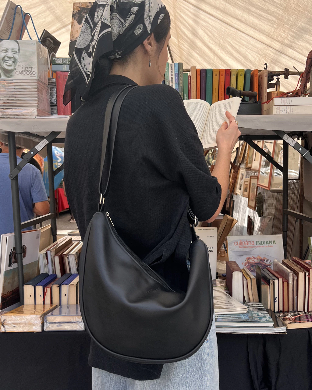• Mais espaço, sem exagero: versão maior da clássica Bolsa Lua, pensada para quem precisa carregar mais sem abrir mão da praticidade, e estilo.